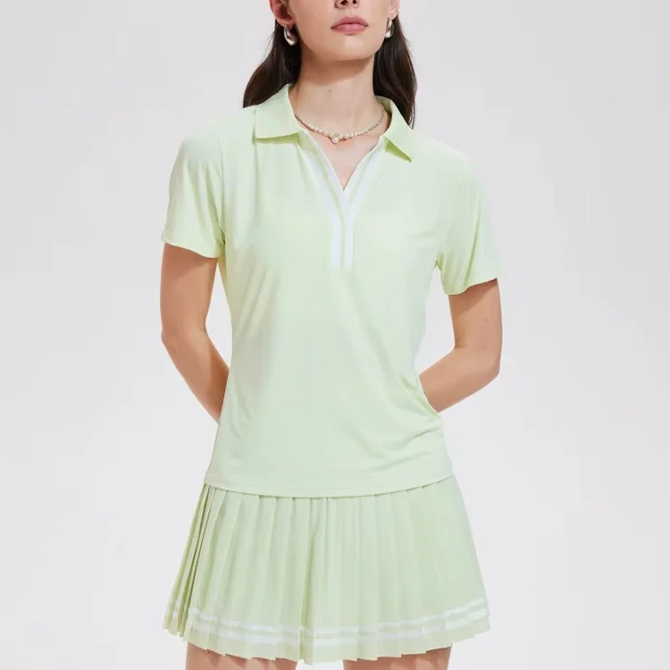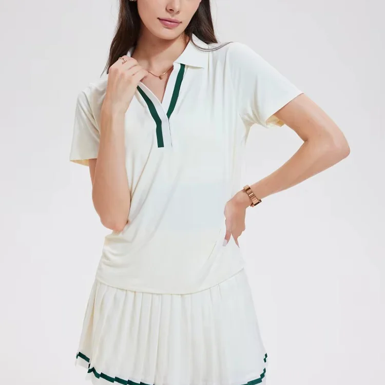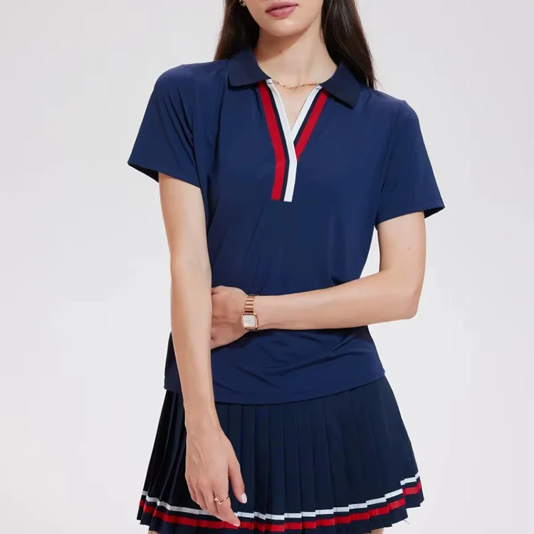 High Quality Sports Breathable Quick Dry Women's Tennis Wear Short Sleeve V-Neck Women's Tennis Skirt Set
